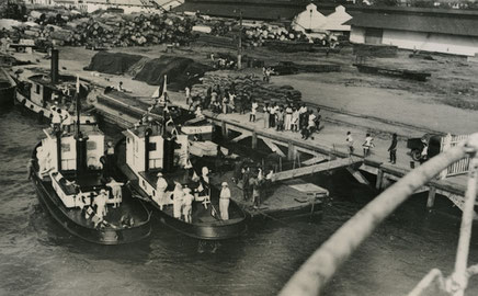 Le long du fleuve, on apercevait d’imposantes et élégantes maisons le plus souvent en bois et couvertes de tôles et devant chacune, était hissé un drapeau qui désignait la nationalité de son propriétaire.