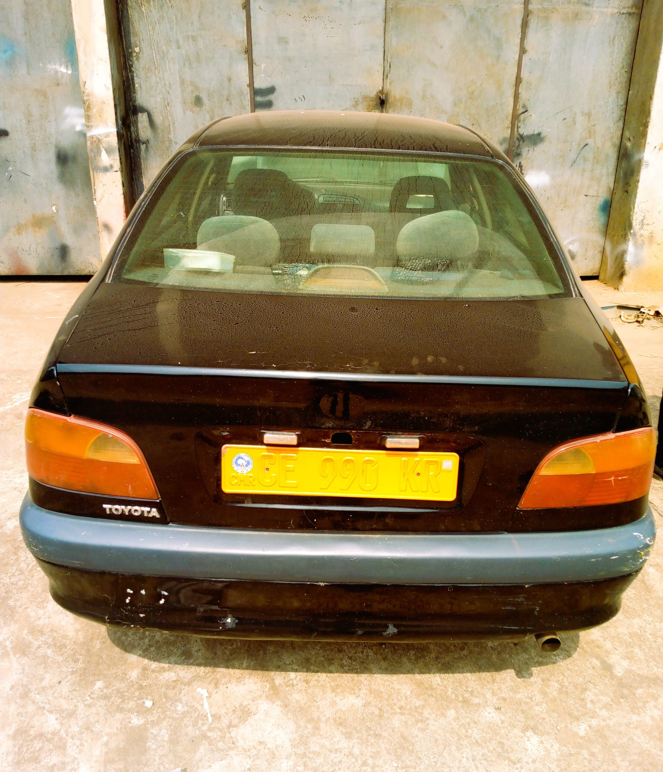 La carrosserie est de couleur noire, un choix apprécié pour son élégance et sa facilité d’entretien. Le véhicule présente un aspect cohérent avec une voiture d’occasion à ce niveau de prix. Le pare-chocs arrière et les feux sont en place, sans dommages structurels, ce qui indique un véhicule fonctionnel et exploitable immédiatement.