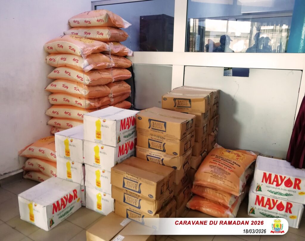 Accompagné de conseillers municipaux et de responsables de la mairie, il a procédé à la remise d’importants dons de denrées alimentaires aux mosquées centrales de Ndobo, Mambanda et Tanko, chargées d’assurer la redistribution vers les 12 autres mosquées de Douala IV.